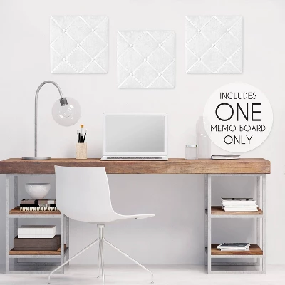 White Lace Collection Fabric Memo Board with button detail will show off postcards, notes and photos. Just slip your mementos behind the ribbon to create an engaging piece of original wall art. These adorable memo boards by Sweet Jojo Designs have been created to coordinate with the matching children’s bedding sets. Features: Metal Hangers on back for easy hanging. No Assembly Needed. Dimensions: 13 in. x 13 in. Note: Pushpins cannot be used with this memo board. It is designed with decorative ribbon to slip your mementos behind.