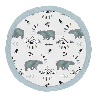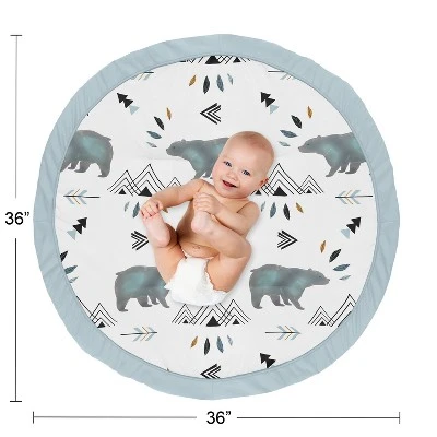Bear Mountain Collection Play Mats by Sweet Jojo Designs make tummy time and child development stylish and fun. Made with soft fabrics and fluffy fill, this multi-functional mat is small enough to take on the go. These adorable playmats will transform any room into the perfect play space. Great for vacations, playdates, beach outings, and everyday use at home. Always be aware of baby’s surroundings and keep an eye on baby while in use. Not intended for sleep. Sweet Jojo Designs creates various coordinating room accessories and decor for all of their children’s bedding and nursery bedding set collections (These items not included). Playmat is designed using a bear and mountain watercolor print finished with slate blue piping and border – Brushed Microfiber