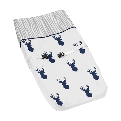 Stag Navy and White Collection Sweet Jojo Designs baby changing pad covers is the perfect nursery essential – it is created with soft fabrics in exclusive patterns and colors and finished with an embellished plush quilted diamond design to hold lining in place. Use a changing mat cover for extra protection and comfort for newborns and toddlers during outfit changes or changing diapers. And it’s always a good idea to buy extras so you can easily change it out when it’s time to wash. Sweet Jojo Designs offers coordinating crib bedding sets, receiving security blankets, nursing pillow covers and other baby room decor accessories (These items not included). This brushed microfiber diaper pad cover features an exclusive design of a navy blue and white woodland deer forest animal stag antler print.