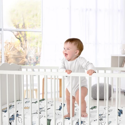 - Fully elastic bottom that securely fits on most standard size cribs and toddler beds