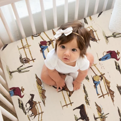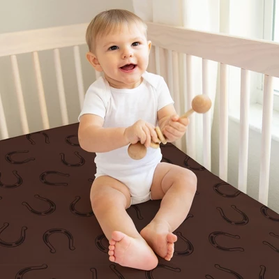 Wild West Cowboy Collection Sweet Jojo Designs 3 pack of crib sheets bring a stylish upgrade to your baby nursery or toddler bedroom and are sure to be your favorite newborn essential. Our cribsheets feature a fully elastic bottom for a secure fit on most standard crib size and toddler beds. Our infant and toddler fitted crib sheets are lightweight and durable making the perfect sleeping environment for your bundle of joy. Don’t forget to purchase extras! It’s always good to have multiple baby bedding sheets to use in between laundry wash days and easily change in case of unexpected, late night messes. Pair your crib baby sheet with your favorite Sweet Jojo Designs collections and coordinate with our crib bedding sets, swaddle blankets, playmats and baby room decor accessories (These items not included). Your 3 pack crib sheet set includes: (1) brushed microfiber crib sheets featuring an exclusive design of a vintage inspired southwestern cowboy print complete with horses, cattle and cacti in a desert sunset landscape print and (1) brushed microfiber crib sheet featuring an off white cream and chocolate brown animal cow print and (1) brushed microfiber crib sheet featuring a tonal horseshoe print, all designed to coordinate with the Wild West Cowboy Collection.