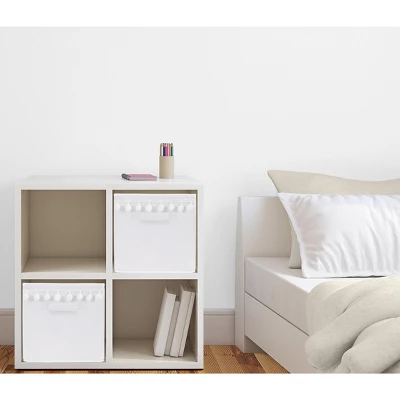 - Reinforced fabric handles allow bins to easily slide in and out of most standard cube shelving