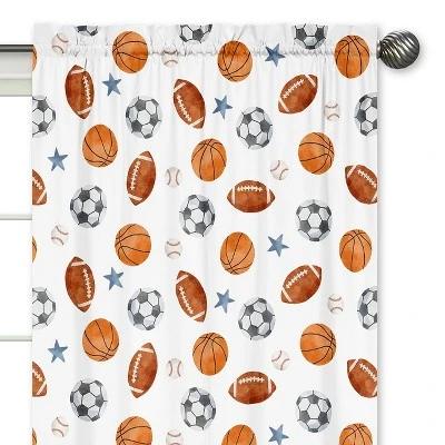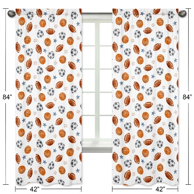 Sweet Jojo Designs Boy Window Curtain Panels Drapes 84in. Watercolor Sports Theme Blue Brown And Orange