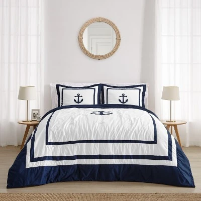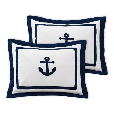 Anchors Away Collection full/queen bedding set by Sweet Jojo Designs has everything you’ll need to create a cozy bedroom in your home. This set includes 1 Full / Queen Comforter and 2 Standard Shams and is made with exclusive and thoughtfully curated Sweet Jojo Designs fabrics and designs. Sweet Jojo Designs creates various coordinating room accessories for all of their bedding sets including hampers, wall decor, sheets and window treatments (These items not included). This set uses crisp white cotton, navy blue accent trims, and features traditional anchor appliques.