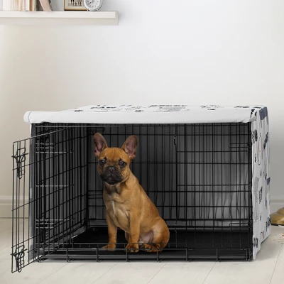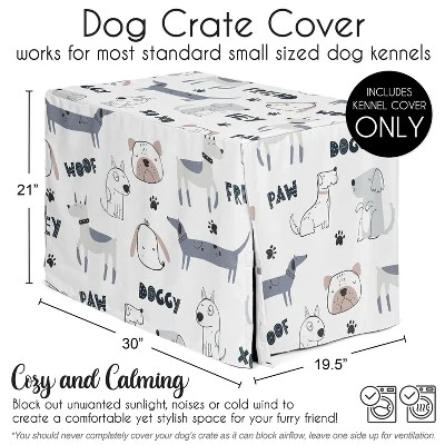 Sweet Jojo Designs Gender Neutral Unisex Dog Crate Kennel Cover 30in. Cartoon Puppy Grey Blue And White
