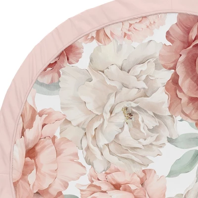 Peony Floral Garden Pink and Ivory Collection Play Mats by Sweet Jojo Designs make tummy time and child development stylish and fun. Made with soft fabrics and fluffy fill, this multi-functional mat is small enough to take on the go. These adorable playmats will transform any room into the perfect play space. Great for vacations, playdates, beach outings, and everyday use at home. Always be aware of baby’s surroundings and keep an eye on baby while in use. Not intended for sleep. Sweet Jojo Designs creates various coordinating room accessories and decor for all of their children’s bedding and nursery bedding set collections (These items not included). Playmat is designed using a blush pink and ivory boho shabby chic watercolor floral bohemian vintage garden peony flower print and finished with blush pink piping and border