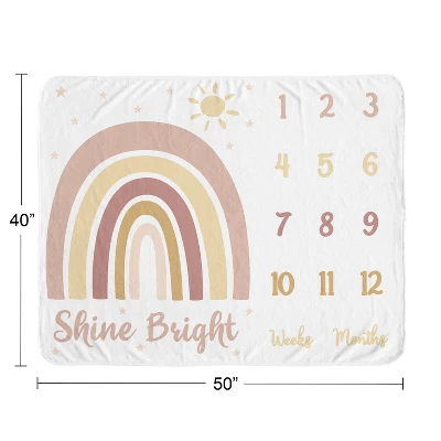 Sweet Jojo Designs Girl Milestone Swaddle Baby Blanket Boho Rainbow Pink Yellow And White