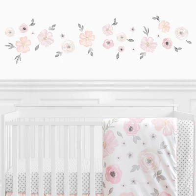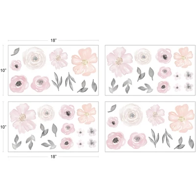Watercolor Floral Pink and Grey Collection removable wall decals by Sweet Jojo Designs makes designing your child’s bedroom in a theme they will love easy and fun! Add a stylish and colorful touch to any bedroom. These wall decals make great gifts! Enhance your room decor and create an interesting and stimulating environment with these great wall decals. *NOTE: Please consult a professional if you are working with a non-standard wall finish. These decals are intended for standard flat wall finishes and may not adhere completely to a textured wall. Sweet Jojo Designs creates various coordinating room accessories and decor for all of their children’s bedding and nursery bedding set collections (These items not included). Features boho floral bohemian farmhouse shabby chic rose lily elegant flowers.