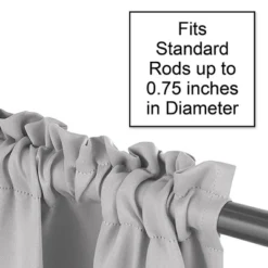 - Rod Pocket style valance. Fits standard rods up to .75 inches in diameter.